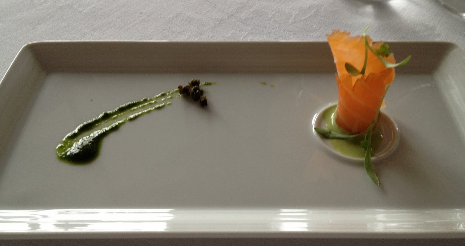 Amouse-Bouche: Salmon with Balsamic Reduction and Roasted Capers |